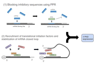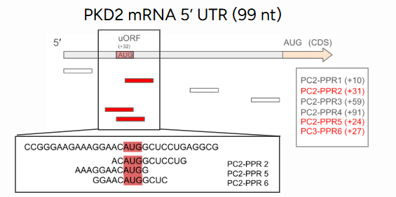 Removing roadblocks — targeting microRNA binding sites and upstream open reading frames (uORFs) that suppress PKD translation.
